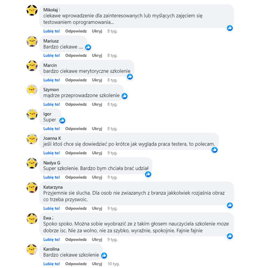 “W branży IT jestem od 2004 roku. Z doświadczenia wiem, czego wymaga się od testerów oprogramowania. Brałem udział w wielu rekrutacjach. Dlatego przygotuję Cię nie tylko do rozmowy rekrutacyjnej, ale pomogę Ci przygotować idealne CV i zdobyć doświadczenie dzięki czemu szybciej wejdziesz w branżę IT”.